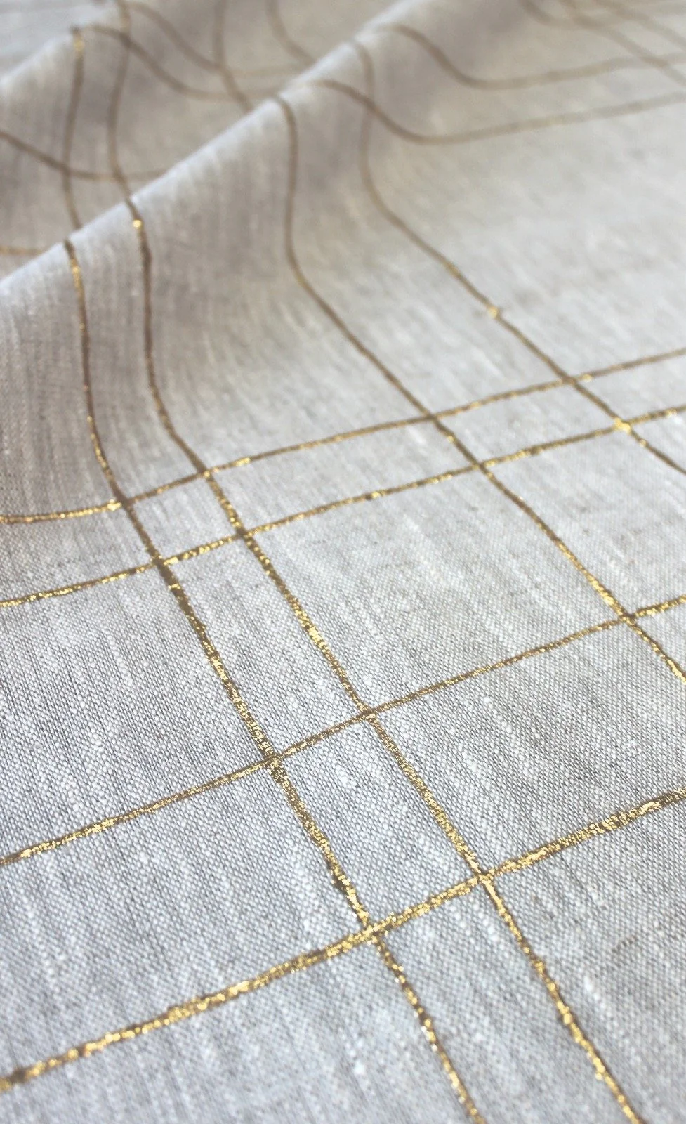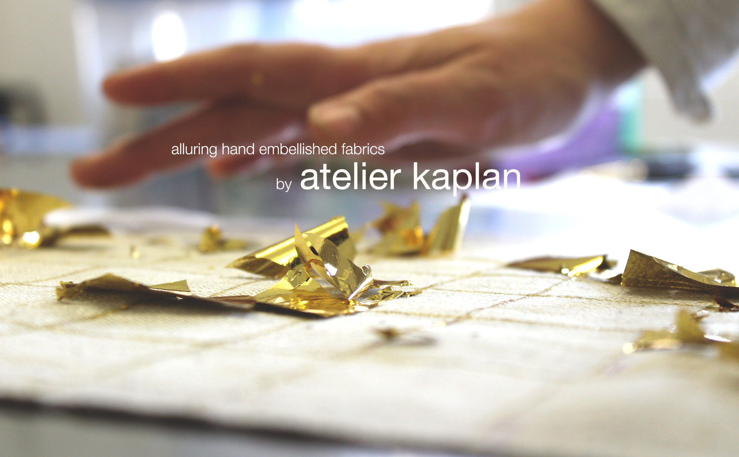 Atelier Kaplan offers custom gilded fabrics, a technique that can be applied to drapery, lampshades, cushions, and apparel.