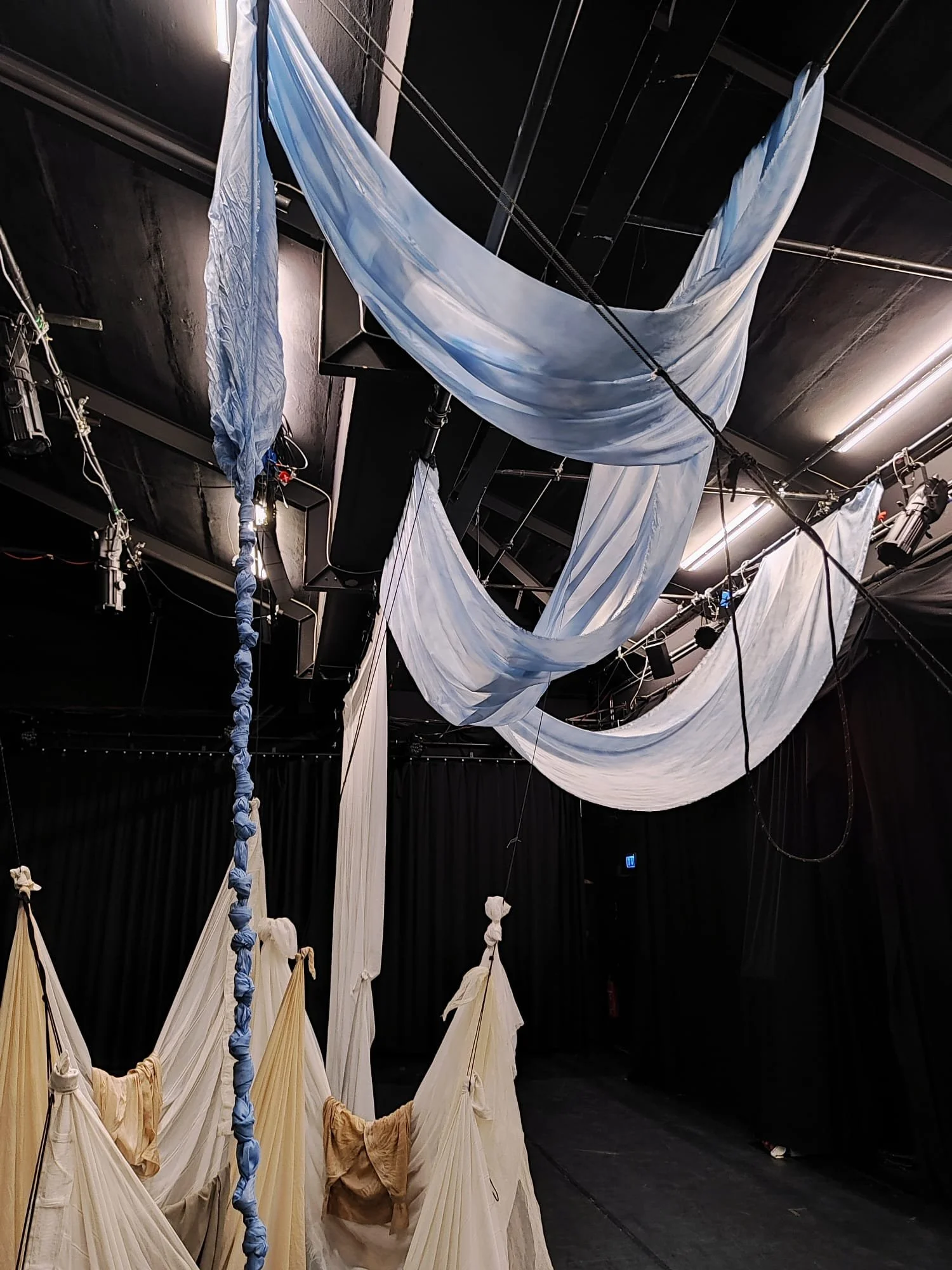 For a 2025 theater production in Frankfurt am Main, the stage design featured thirty meters of hand-dyed fabric crafted by Atelier Kaplan.