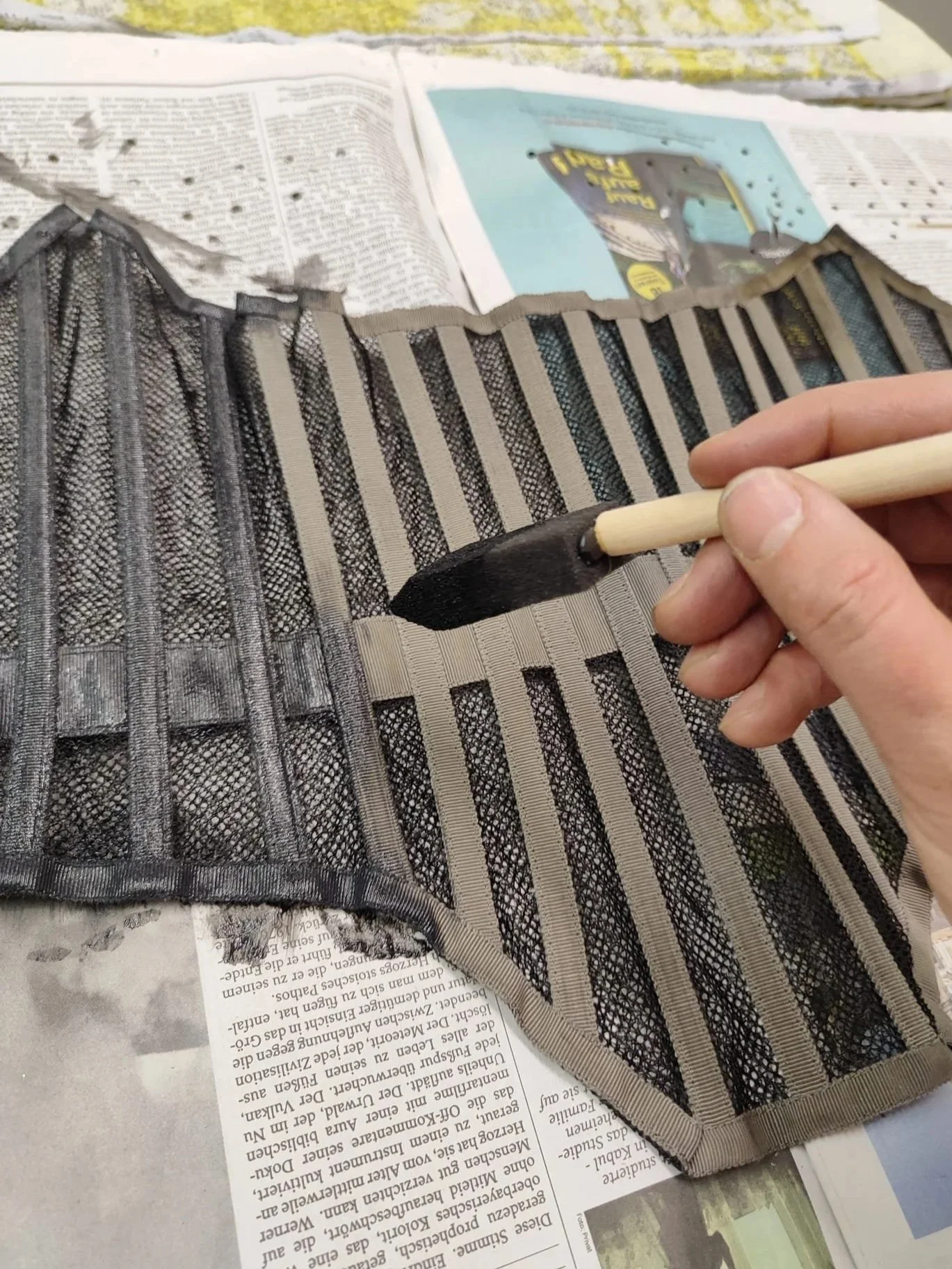 Atelier Kaplan offers expert hand dyeing and hand painting. This particular piece was a private commission for a white to black died made-to-measure corset by Ritual Unions.